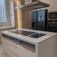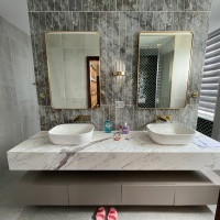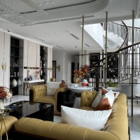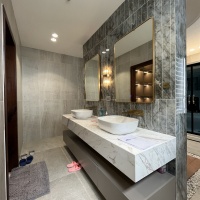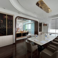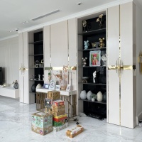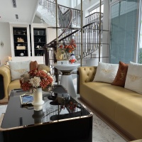 - Quầy bar bếp kệ: trang trí inox mạ vàng PVD, dán gạch mosaic mặt quầy, đá granite tự nhiên ốp quầy bar